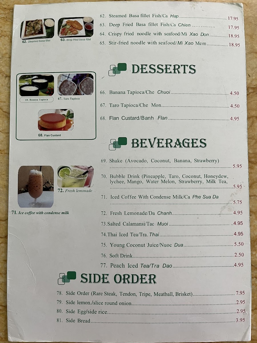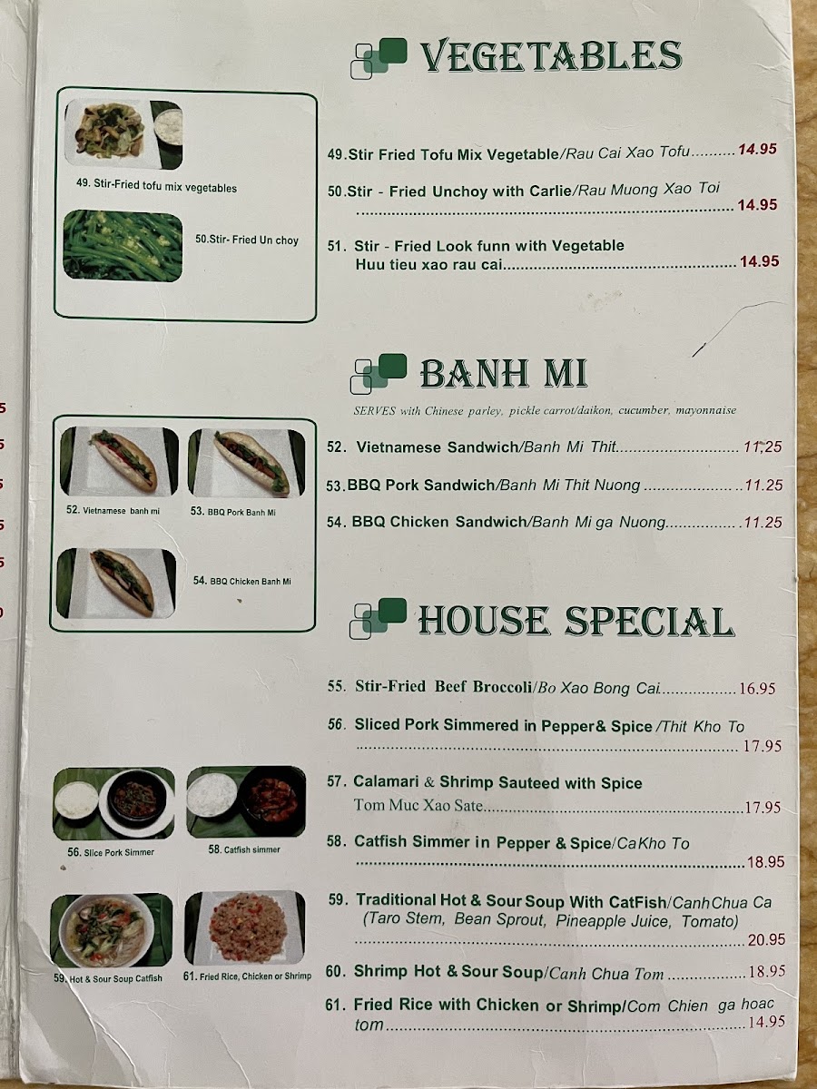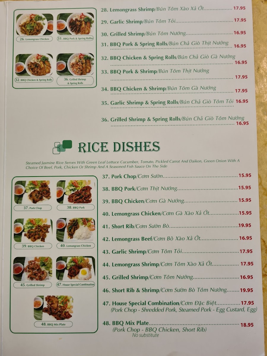 Whether at the restaurant’s modest seating or grabbing food to go, this menu provides a genuine taste of Vietnamese cuisine that suits everyday dining occasions. It’s for those who appreciate meals with enough nuance to enjoy but without the formality—just simple, thoughtful Vietnamese dishes that feel like a well-loved local secret.